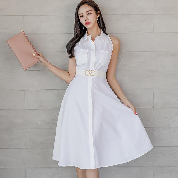 ワンピース シャツワンピース Aライン 膝丈 ひざ丈 ノースリーブ お出かけ デート 買い物 シンプル 大人カジュアル フレア Yasu02 リラークショップ 通販 Yahoo ショッピング